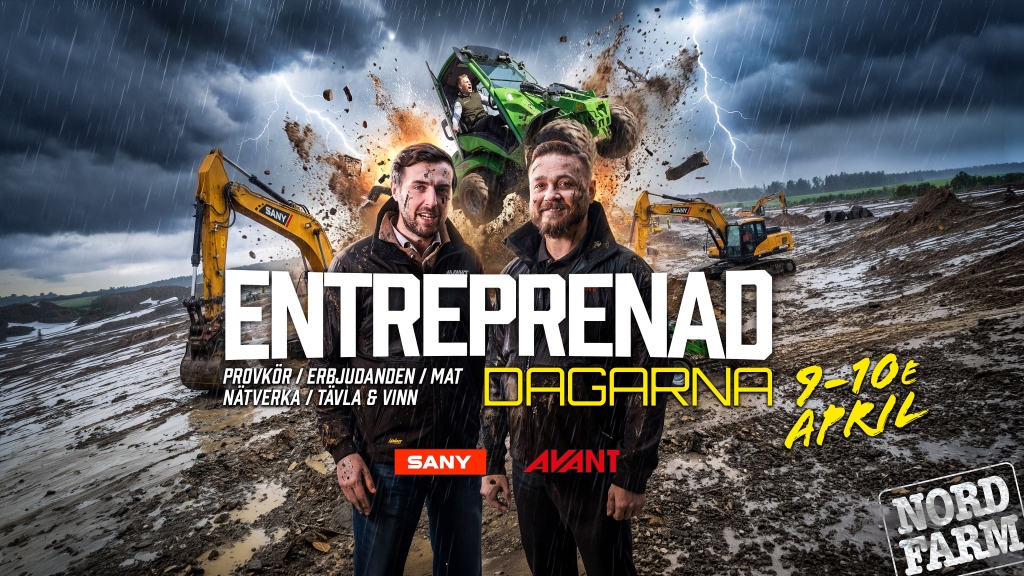 Den 9-10 april bjuder Nordfarm in till två fullspäckade dagar på Surgatan 12 i Norrköping. Här kan du provköra grävmaskiner från SANY, testa Avant kompaktlastare med redskap och ta del av maskiner från SAMI och Palmse Trailer. Vi bjuder dessutom på mat, fika och unika tävlingar med riktigt fina priser.