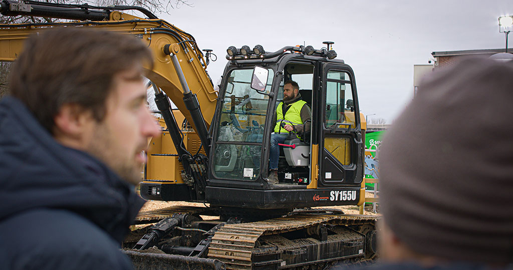 Du kan även en provköra elektrisk grävmaskin och en den elektriska hjullastaren SANY SW956E, samt flera andra modeller. Demoytan är fylld med material så att du verkligen får känna på maskinerna i arbete.