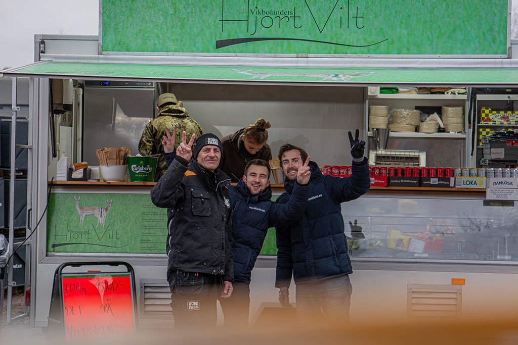 I eventtältet serverar vi delikata hamburgare, läsk, kaffe och tilltugg.