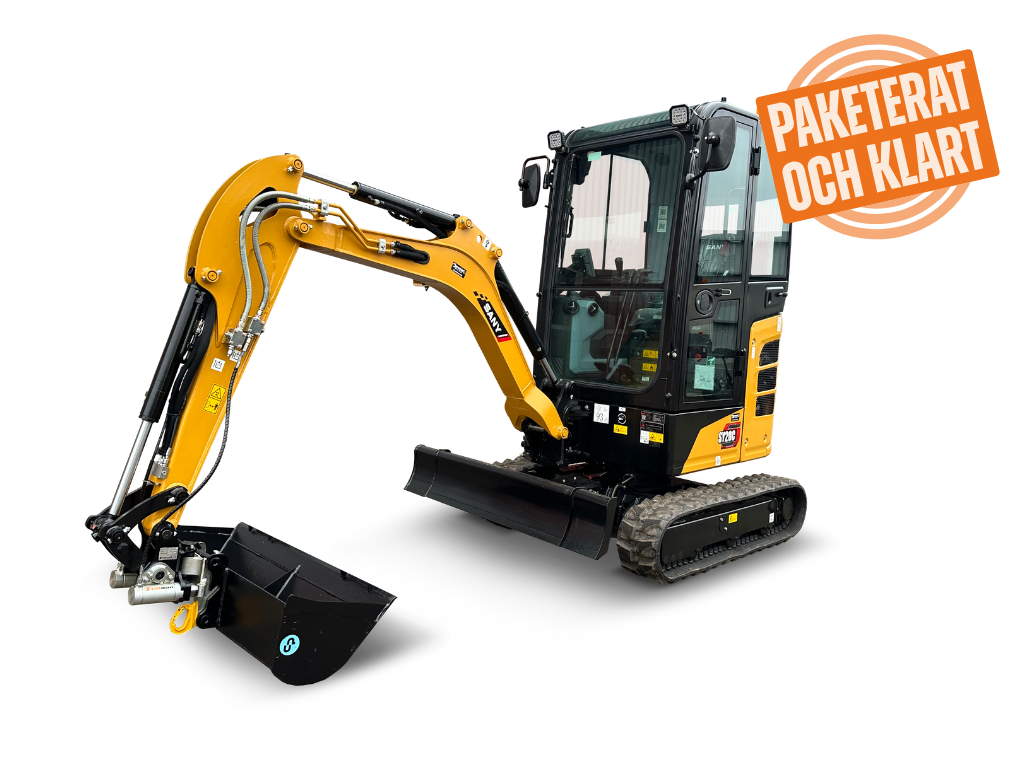 Som alla SANY’s grävmaskiner är den väl utrustad från början som t ex den mångsidiga proportionella hydrauliken med två externa hydrauluttag (AUX1/AUX2) eller den ergonomiska hytten med värme, fjädrande stol, förardisplay i färg och USB/Bluetooth radio.