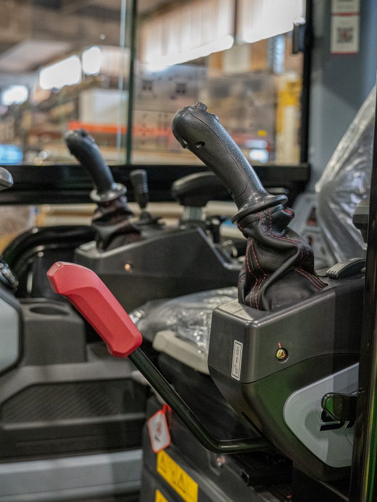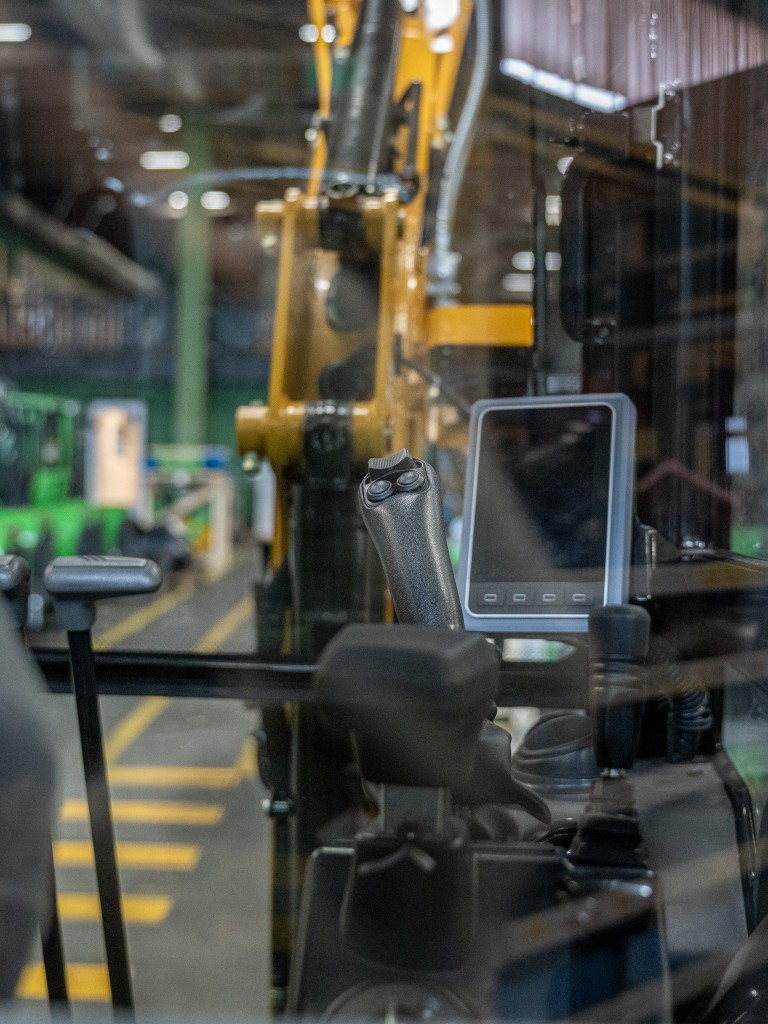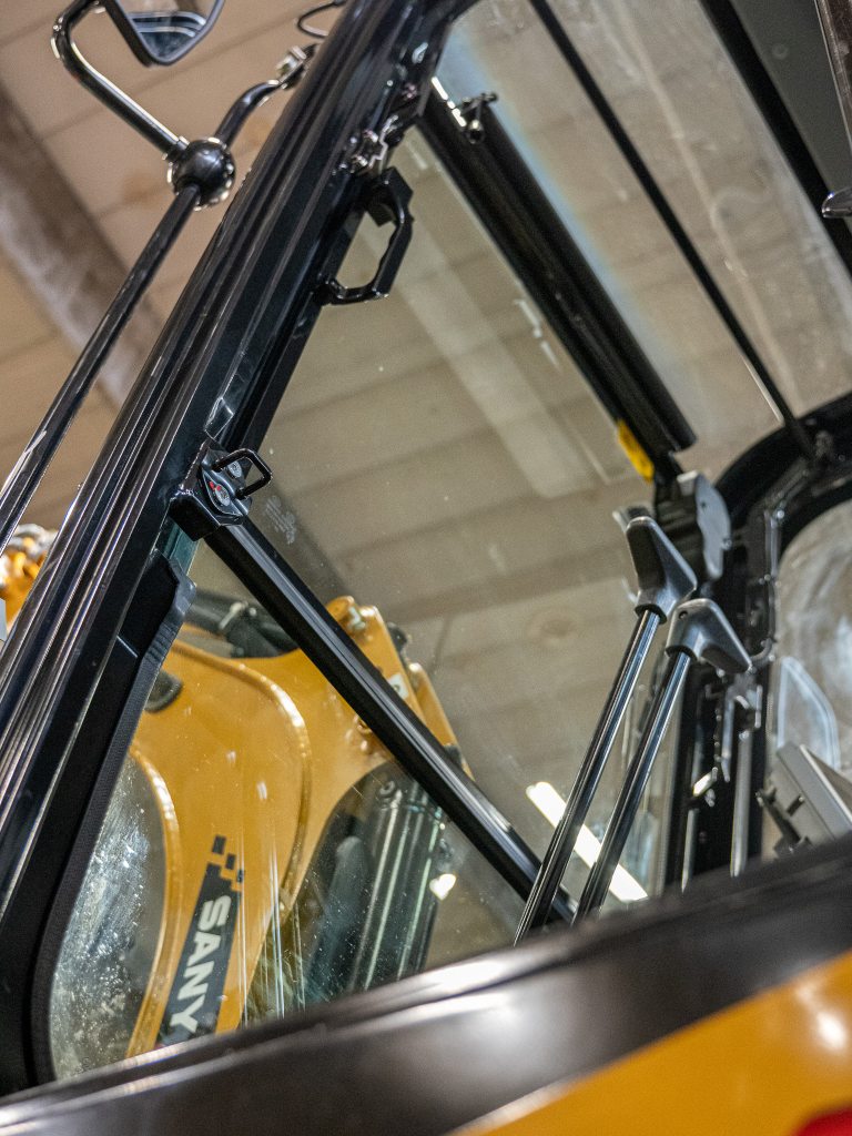 Maskinen är utrustad med AC i hytten, vilket ger hög komfort året runt, även under varma arbetsdagar. Den större, mer ergonomiskt utformade hytten ger föraren en bekväm och funktionell arbetsmiljö med god sikt och lättåtkomliga reglage.