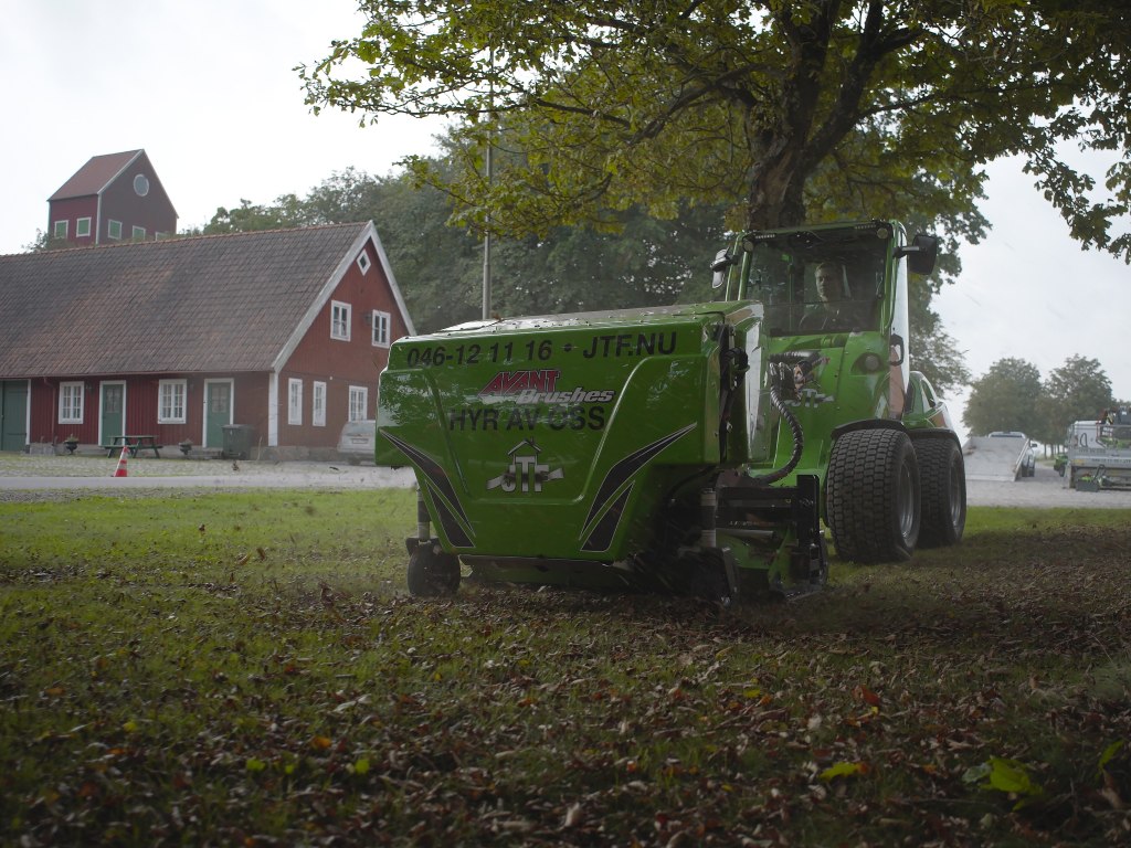 Under eftermiddagen får vi från Nordfarm följa med ut på uppdrag. Arbetsgruppen består idag av tre bilar med släp där de packat med sig två Avanter och en massa redskap. Ekipagen styr mot Svenstorps gods där JTF utöver att genomföra bokade arbeten även kommer att utföra en visning för fastighetsägaren, för att åskådliggöra vilka ytterligare tjänster företaget kan erbjuda.