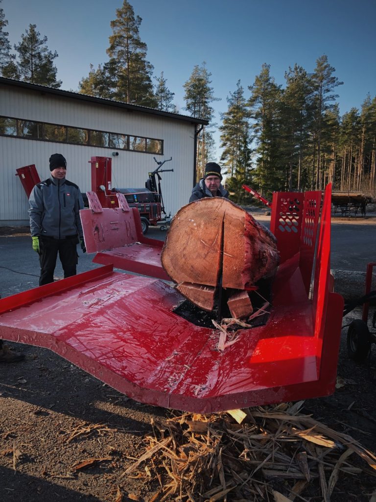 Vi blev guidade igenom produktsortimentet av Markus som jobbar på produktutvecklingen, och som dessutom även driver vedtillverkning på hemmaplan. Under ledning av Markus fick vi också bra tips på hur vi kunde förbättra vår körning, och även göra den säkrare.