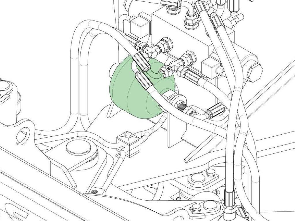 Tryckackumulatorn ser till att skydda plogvingarna vid en kollision.