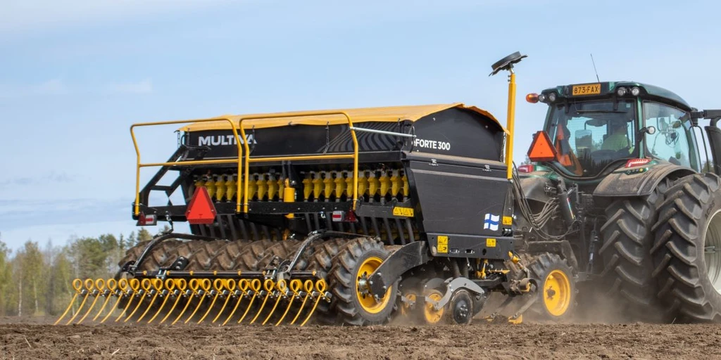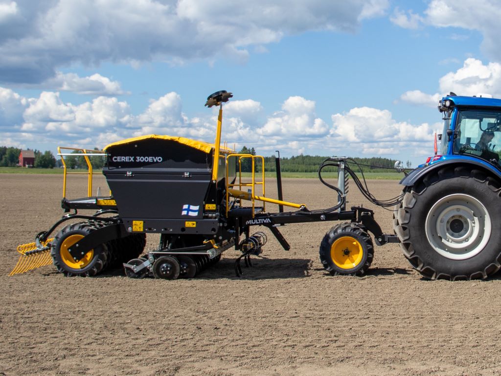 Direktsåmaskin från Multiva med 250 kg billtryck och ett avancerat styrsystem som standard med möjlighet att justera utsäde och gödningsmängd från skärmen.