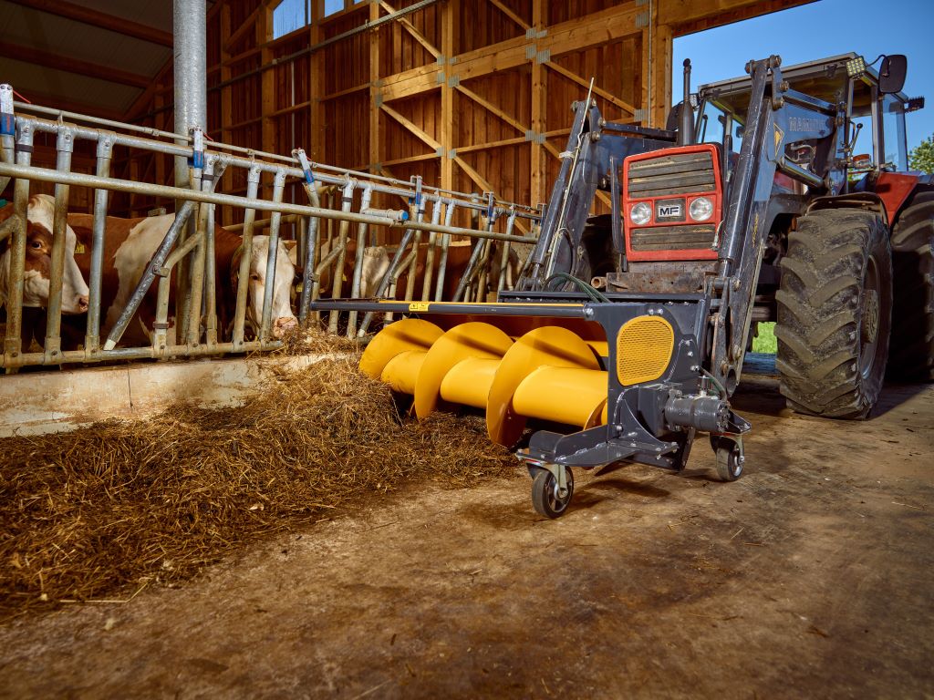 Mammut Fortuna är en kraftfull foderförflyttare som både skjuter fram och luftar upp fodret vid foderbordet – vilket främjar foderintag, djurhälsa och minskar foderspill.