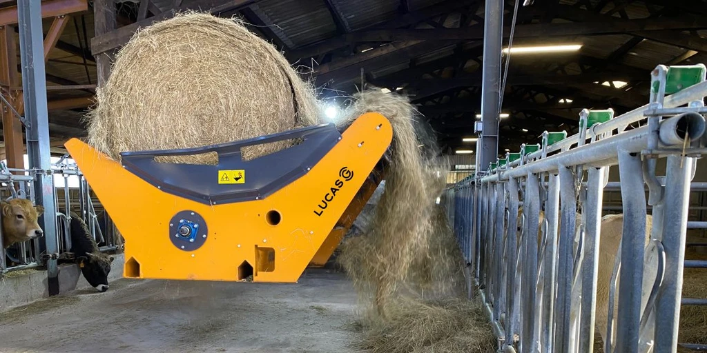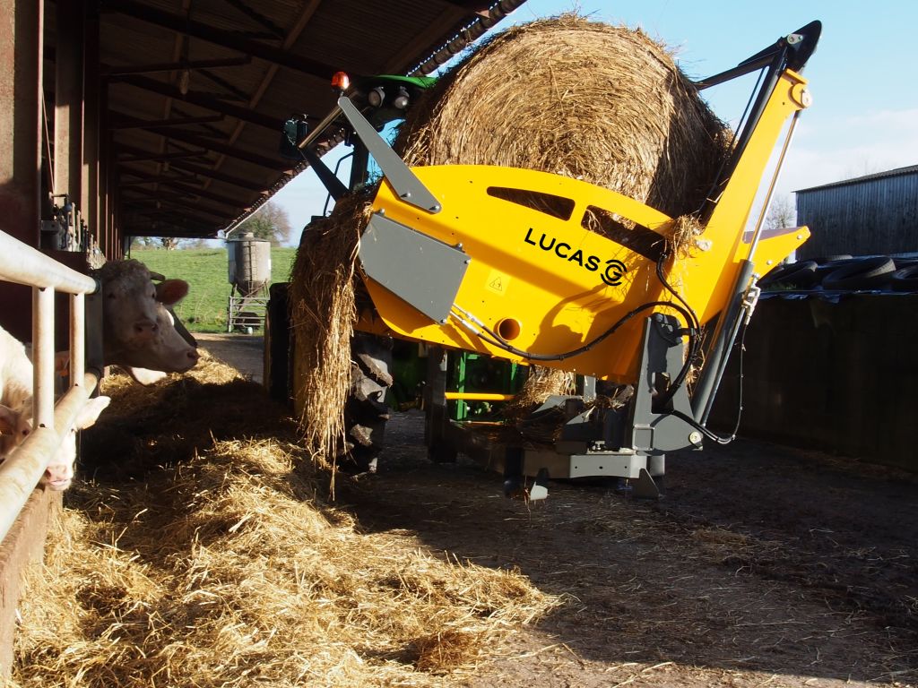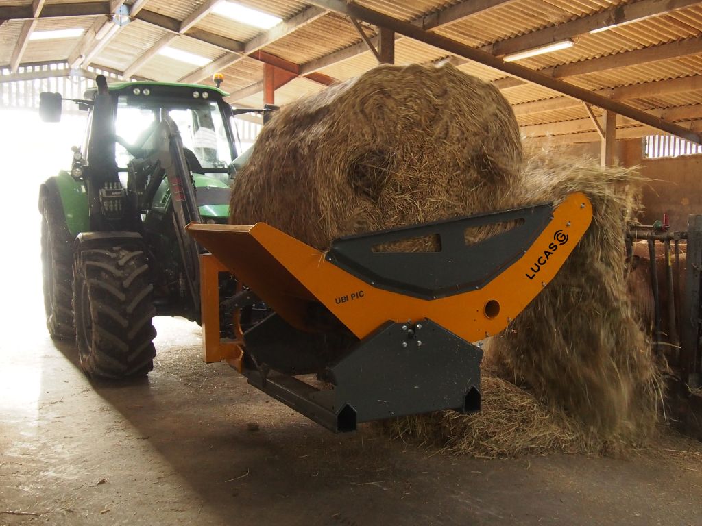 Lucas UBI är en balupprullare som effektivt rullar upp balen och fördelar halm eller hö – ett smidigt redskap för enkel ströning eller utfodring.
