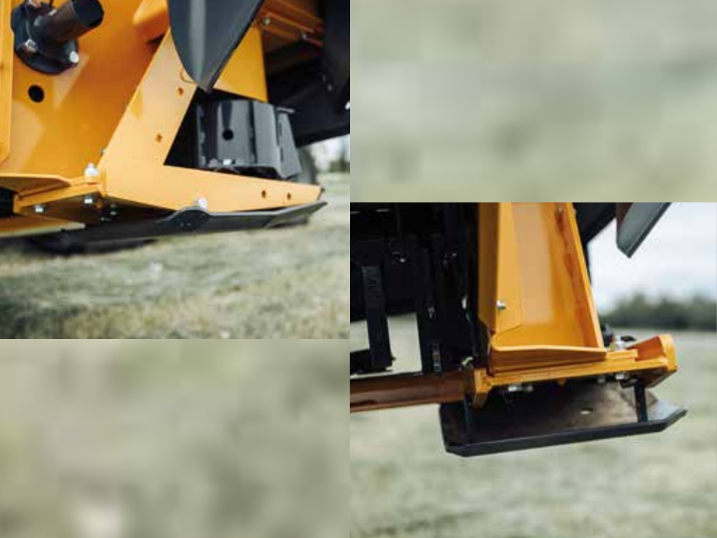Justerbara släpskor gör det enkelt att anpassa stubbhöjden vid till exempel helsäd eller steniga fält, snabbt och verktygsfritt.