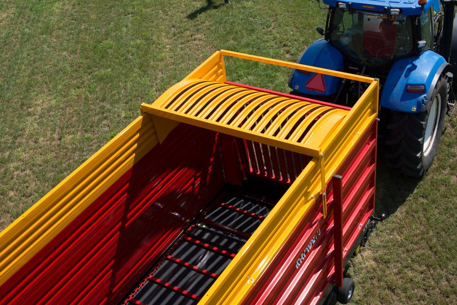 Toppmodern, hydrauliskt fjädrad snittvagn som även fungerar som fältvagn vid majsskörd.