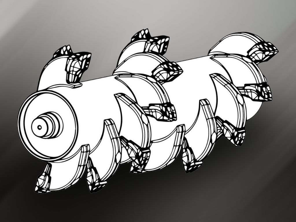 590 mm spiralrotor med upp till 54 utbytbara tänder maler jord, sten och växtmaterial snabbt och noggrant med hög periferihastighet.