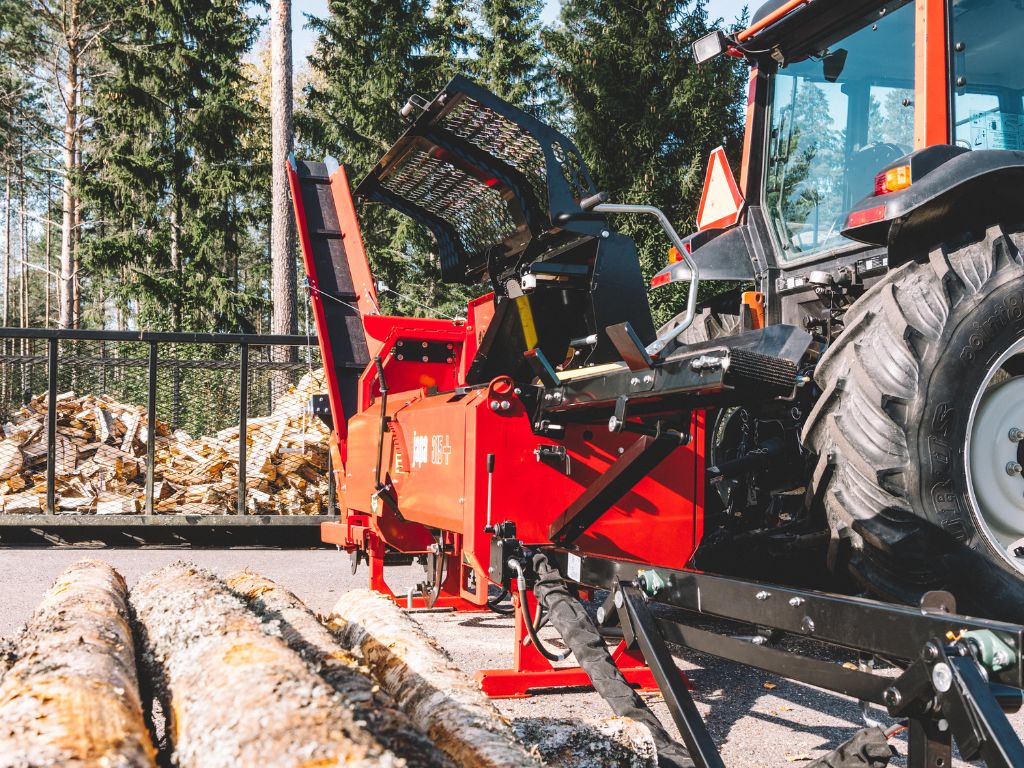 Det hydrauliska inmatningsbandet i full storlek tillsammans med justerbart vedstopp gör det enkelt att mata in stockar och få exakt vedlängd – gång på gång.