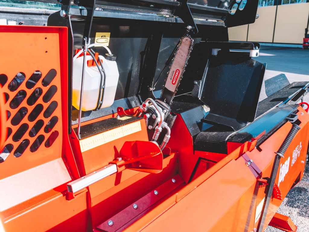 Japa 315 kombinerar säkerhet och produktivitet i ett kompakt format. Skyddsburen ger god överblick och skyddar samtidigt operatören. Dödmansgreppet stannar omedelbart maskinen vid behov.