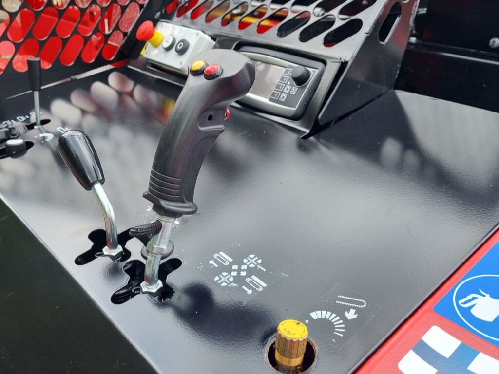 Sågningen styrs med en joystickknapp för enkel enhandshantering. Den tydliga användarpanelen och möjligheten att reversera utmatningsbandet gör arbetet smidigt, snabbt och säkert.