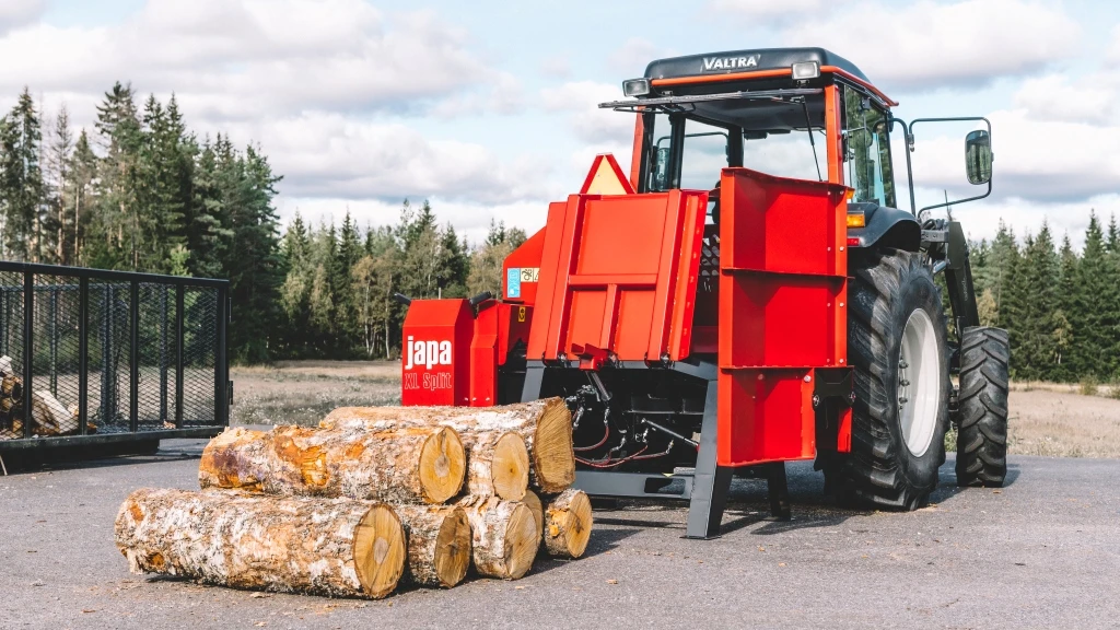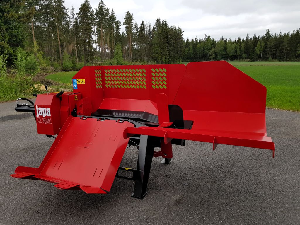 Japa XL-Split är en professionell vedklyv som enkelt kombineras med en vedmaskin för effektiv hantering av stora kubbar. Med extern hydraulik, hydraulisk stocklyft och justerbar klyvyxa hanteras stockar upp till 80 cm i diameter och 1 meter i längd av en ensam operatör.