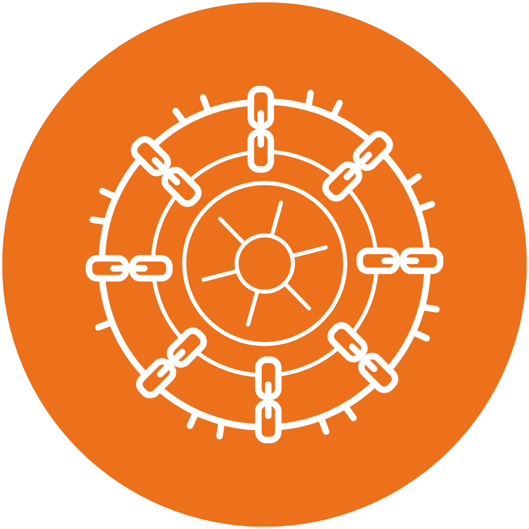 Alla OFA:s traktor- och snökedjor tillverkas av sätthärdat borstål IB20 med genomgående hårdhet i hela kättingen. Det ger lång livslängd, god formbarhet och utmärkta svetsegenskaper – viktiga egenskaper vid konstruktion och montering av slirskydd. Sortimentet omfattar både broddade och obroddade modeller samt lättviktskedjor för enklare hantering.