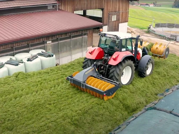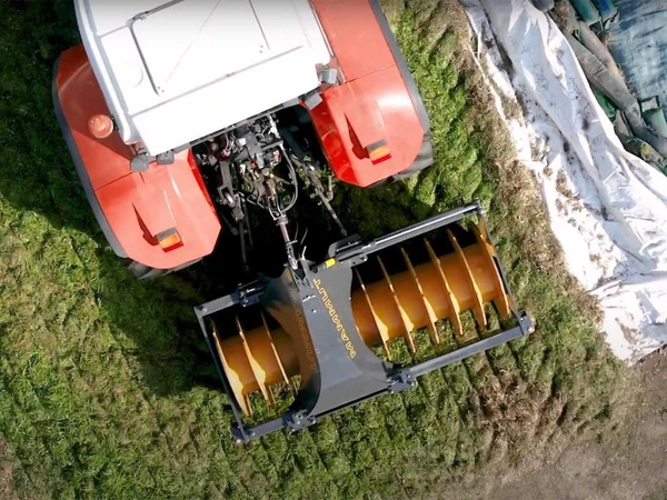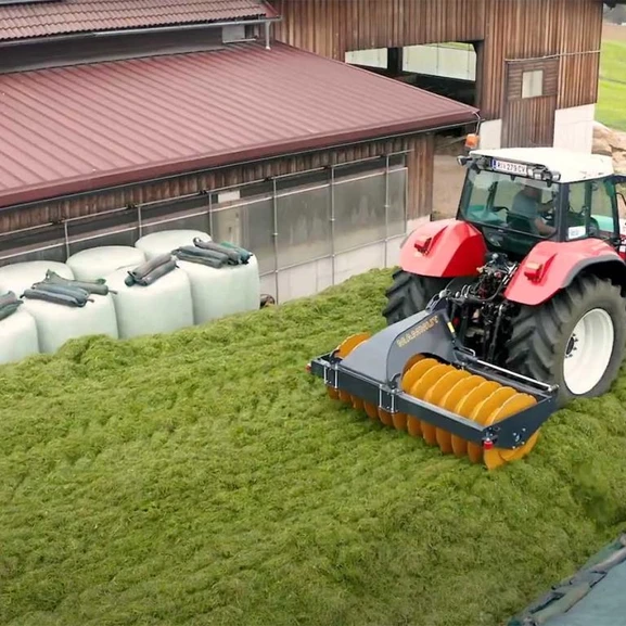 Mammut ensilagepackare Silo Kompakt med hydraulisk sidoförskjutning på 500 mm åt varje håll ökar prestandan i gräs- och majsensilage genom komprimering. Desto bättre de enskilda skikten komprimeras ju färre luftfickor bildas och därmed minskar risken för felaktig jäsning.