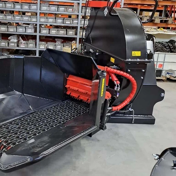 - Hydrauliksystem: Utrustad med ett integrerat hydraulikaggregat, erbjuder vi även en uppgraderad version med kylare för de mest krävande arbetsförhållandena, säkerställande att din flishugg alltid opererar vid optimal kapacitet.