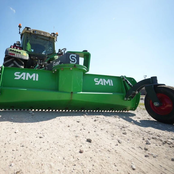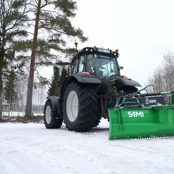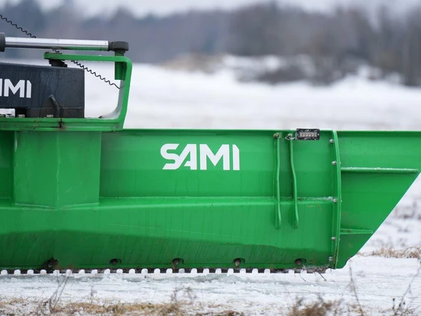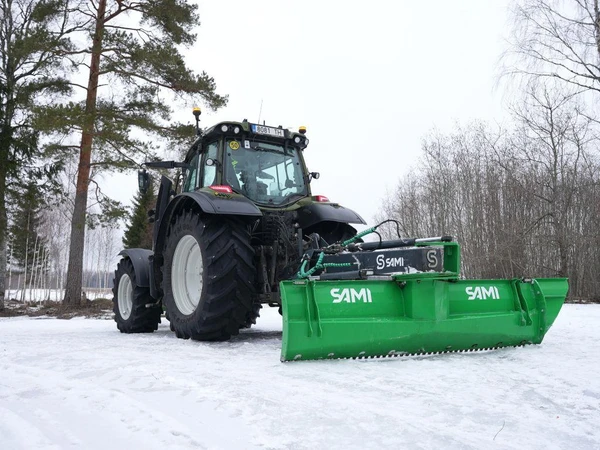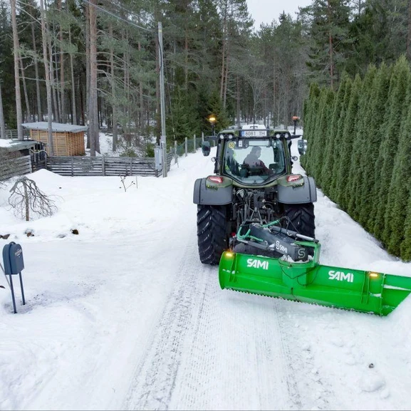 De bakmonterade schaktbladen från Sami skrapar både grus och snö på ett effektivt och användarvänligt sätt.