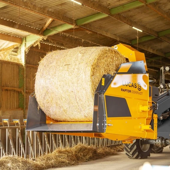 Raptor Compact från Lucas G är utvecklad för lantbrukare som vill ha snabb, exakt och flexibel halmbäddning även i trånga utrymmen. Den kompakta designen gör den perfekt för mindre gårdar och byggnader med begränsat utrymme och passar perfekt för en kompaktlastare.