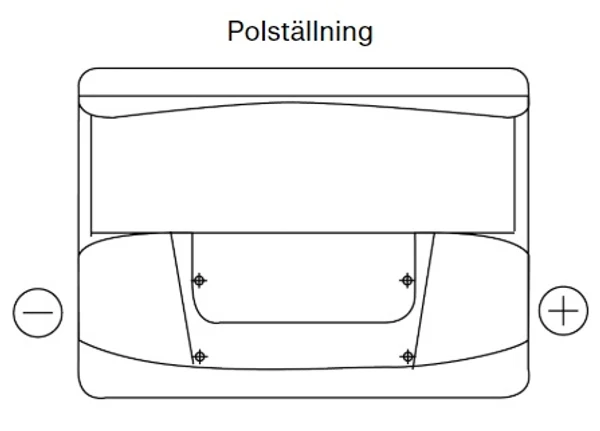 Poler på långsidan, med polerna mot dig är plus till höger.