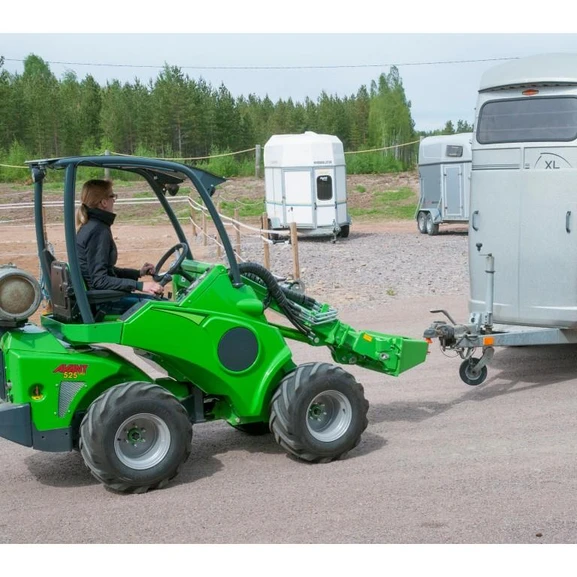 Ett lättare sätt att flytta trailers, vagnsmonterade arbetsplattformar eller båtar på släp och liknande. Tack vare den utmärkta sikten över kulkopplingen är det väldigt enkelt att koppla på bara genom att åka in med kulkopplingen och låsa den genom att lyfta och sänka lastarmen. Utrustad med både en 50 mm kula och gaffeldrag. Vikt 34 kg.