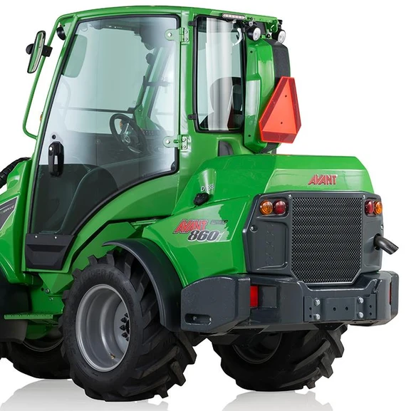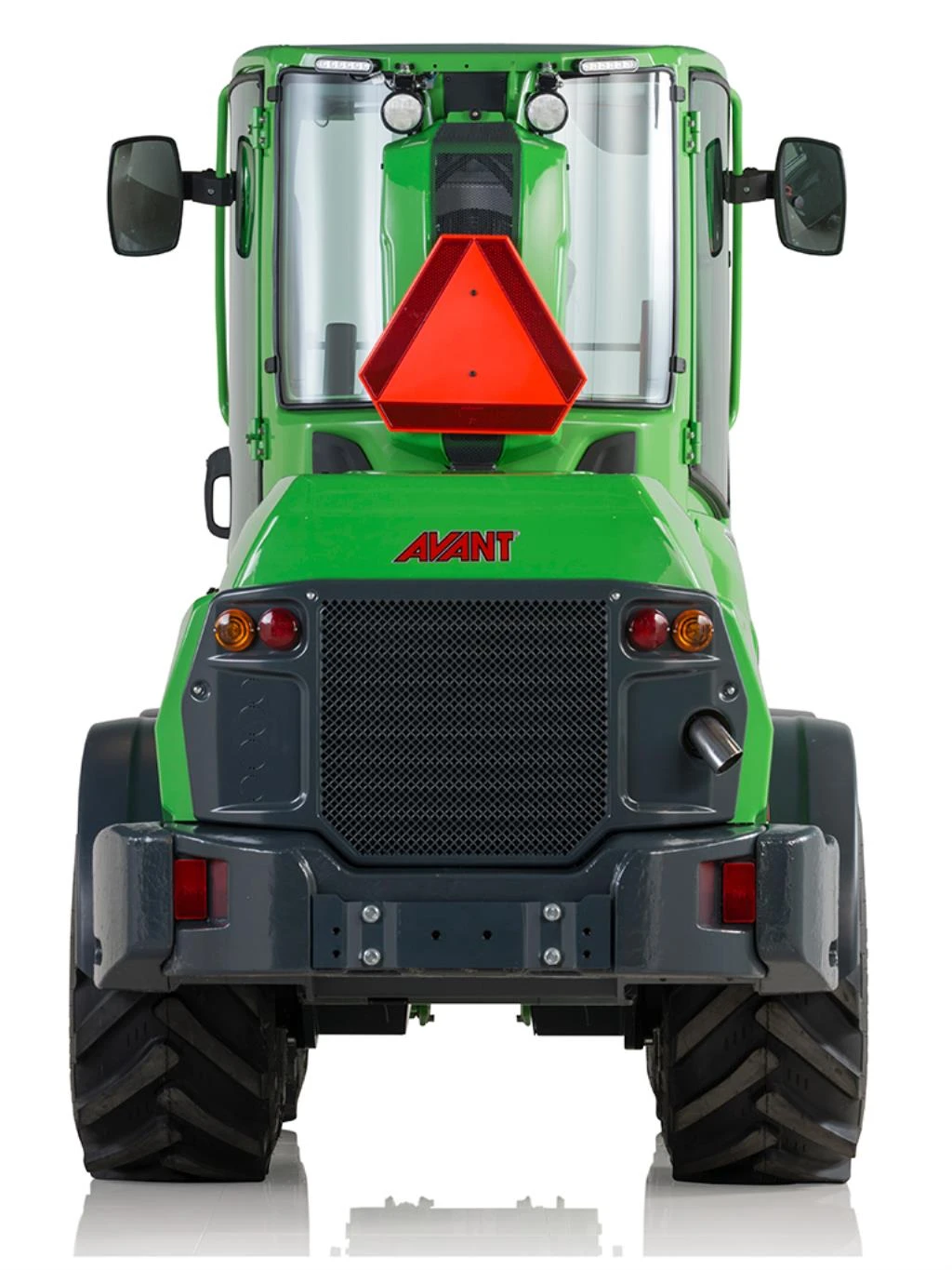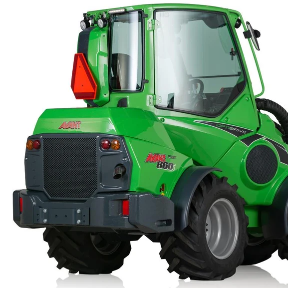Luftkonditionering monterad på baksidan av hytten. Placeringen i mitten tillsammans med de välvda bakrutorna gör att föraren får en bra runt-om-sikt.