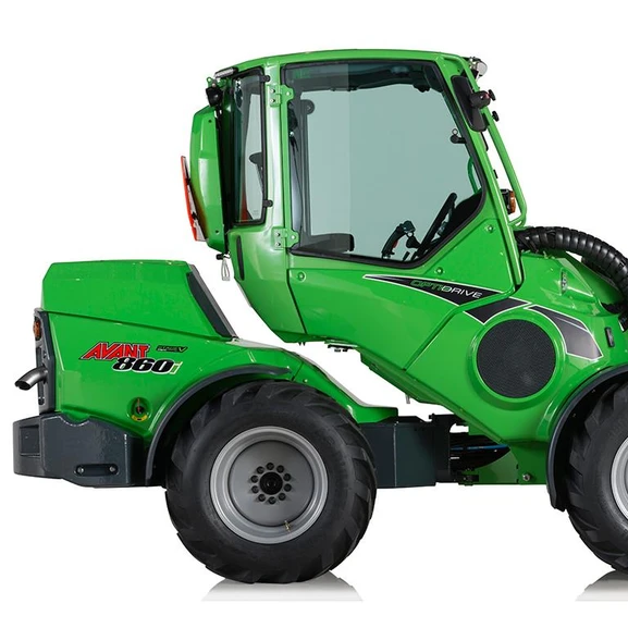 Luftkonditionering monterad på baksidan av hytten. Placeringen i mitten tillsammans med de välvda bakrutorna gör att föraren får en bra runt-om-sikt. Det är ett effektivt aggregat som enkelt ställs in från hytten via reglage på kontrollpanelen.