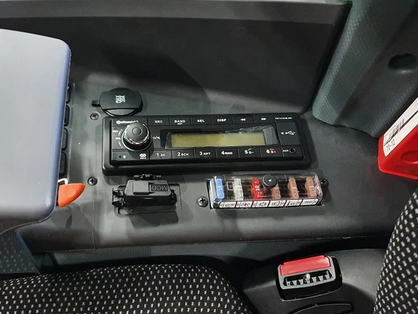 Förhöj dina arbetstimmar i maskinen med en radio. Den har dessutom Bluetooth vilket gör det möjligt att lyssna på poddar, musik och annat från din smarta telefon. I kombination med den ljudisolerade hytten är detta ett bra alternativ för en trevlig arbetsmiljö.