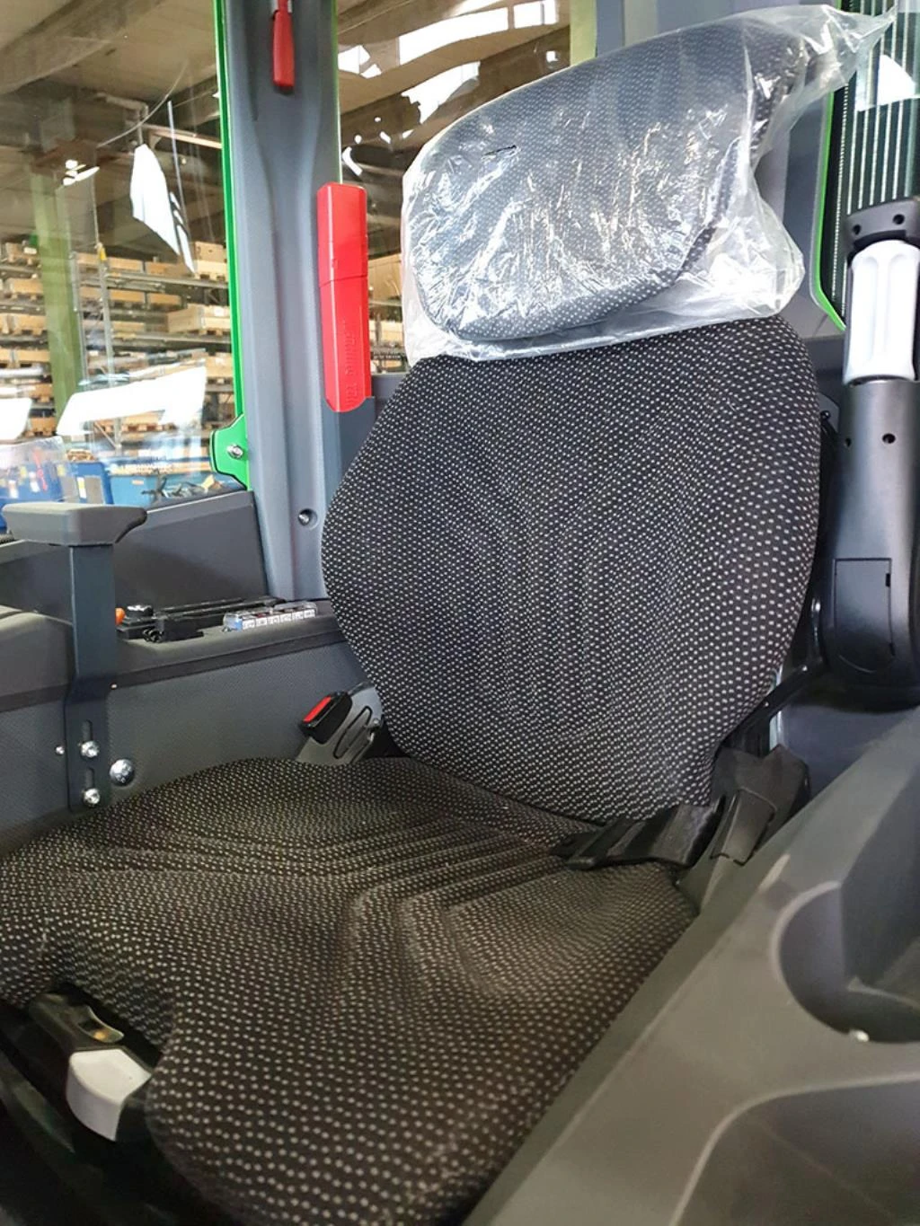För GT-hytten finns en luftfjädrad förarsits att välja till. Det ger en mycket trevlig komfort och sparar rygg och nacke genom att den går att ställa in ergonomiskt.