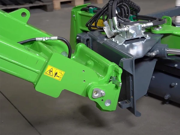 Det hydrauliska redskapsfästet gör det möjligt att från förarsätet koppla på och av redskap, vilket skyndar på koppling betydligt.
