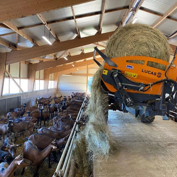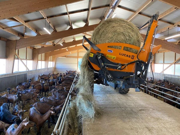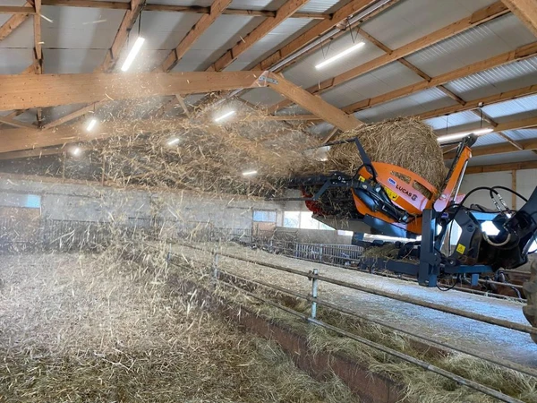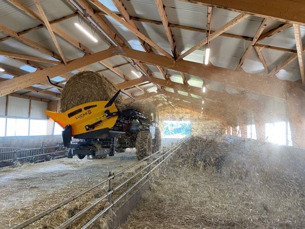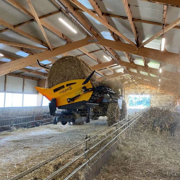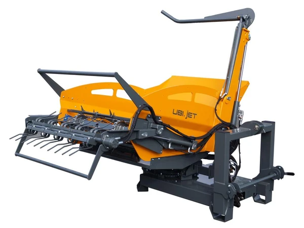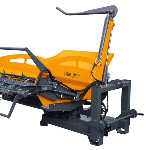 UBI JET har en hydrauliskt tiltbar ram och lastarm som standard, vilket möjliggör enkel lastning och transport av balar. Ramen är roterbar och tillåter utmatning åt höger, vänster och rakt bakåt.