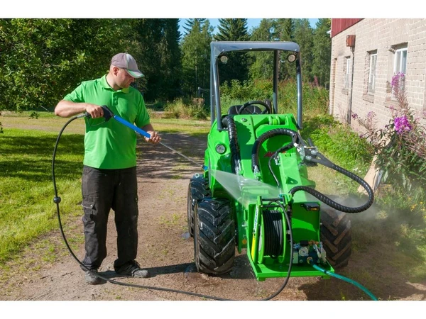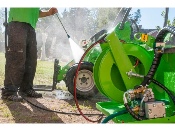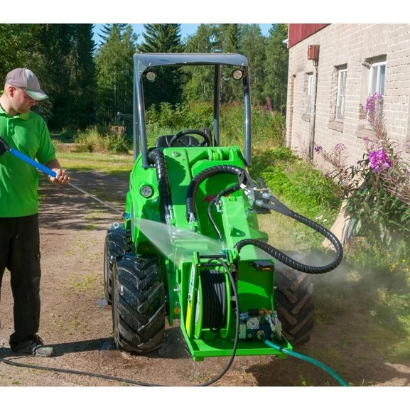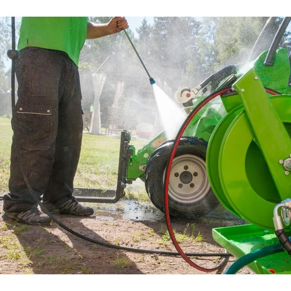 Kraftfull högtryckstvätt med tvättpistol och 20 m slangrulle. Lätt att ta med överallt. Skapar max. 30 l vatten/min vid 200 bars tryck. Ansluts direkt till vattenkranen. Alternativt tas vattnet upp med tilloppsslangen från någon reservoar. Klarar 3 meters vattenpelare. Detta är mycket användbart när du behöver ta vatten från tank, behållare eller en sjö.