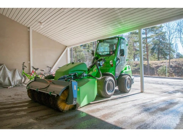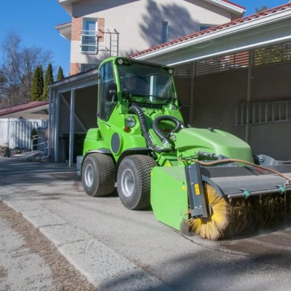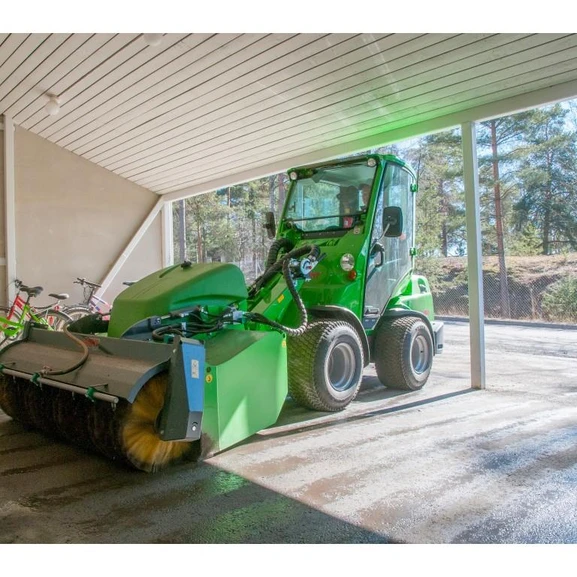 Det finns också ett bevattningssystem för att binda damm. Det minimerar dammutvecklingen när man sopar torrt skräp.