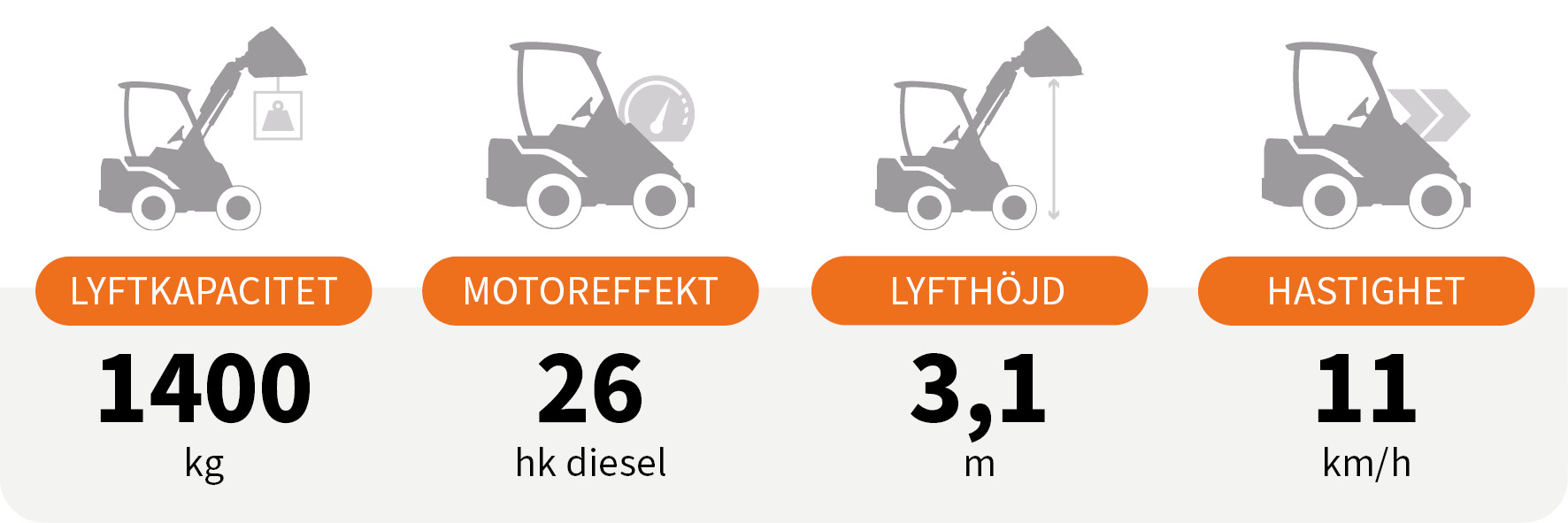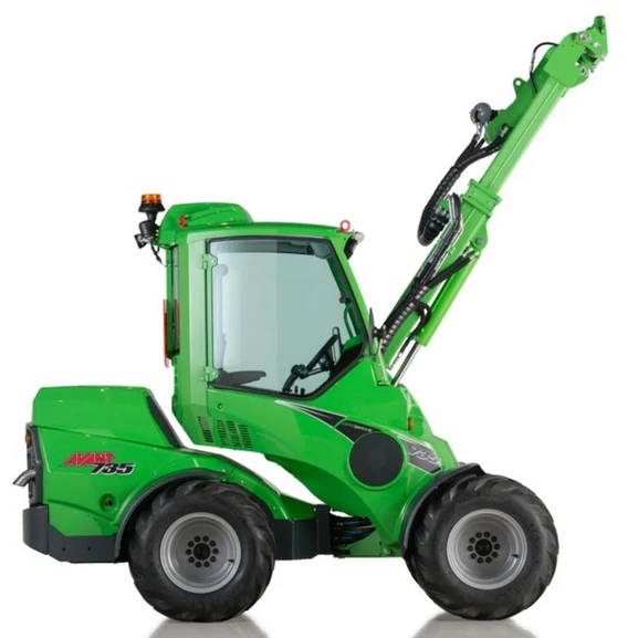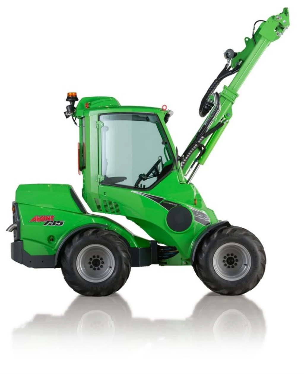 Avant 735, utrustad med Kubota V1505 Stage V-motor. En utmärkt och ekonomisk maskin för lyft och materialhantering, som klarar pallar upp till 1400 kg.