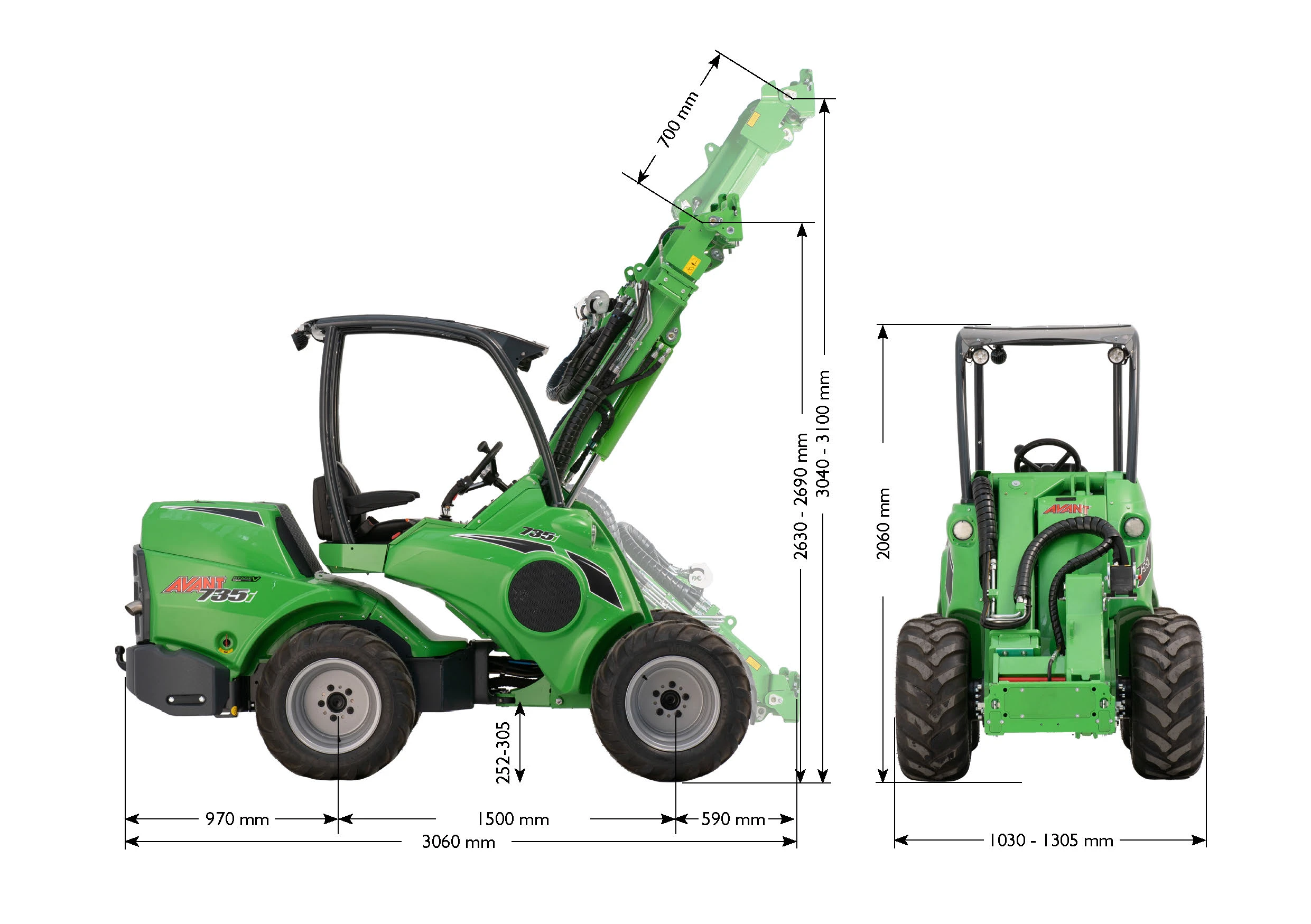 Avant 735 har en stark bomkonstruktion och ett högre oljeflöde för redskap med dubbel pump på hela 50 l/min. En lyfthöjd på upp till 3080 mm gör den till en oslagbar partner på gården!