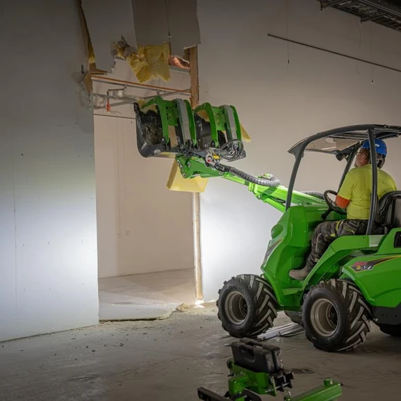 Avant e5-27 är en miljövänlig och effektiv kompaktlastare som är helt eldriven. Den har ett 27 kWh OptiTemp-batteri från Avant Power som ger dig en hel arbetsdag på en enda laddning. Det är dubbelt så mycket som konkurrenternas batterier.