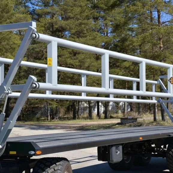 B3980 har en lastyta på 9800 x 2460 mm och en maximal lastkapacitet på 20 000 kg. Den kan till exempel utrustas med hydrauliska sidogrindar, luftbromsar och hydrauliskt stödben för ökad stabilitet och säkerhet.
