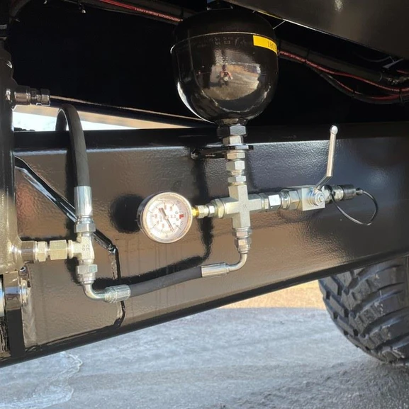 Draget är upphängt i två hydraulcylindrar som har ett slutet system och fjädrar emot två ackumulatorklockor. Med en slang som finns på draget kan man öka eller minska trycket i systemet för att anpassa avfjädringen efter lastens vikt.