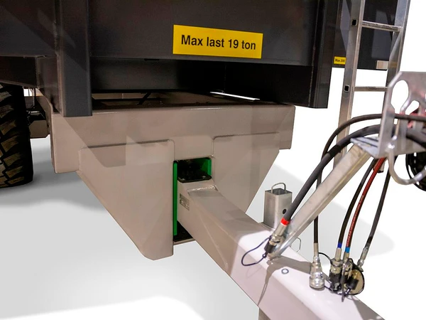 Tar upp stötar på dragstången och traktorns upphängning, förhindrar gungning vid högre hastigheter. Ökar komforten och sparar på traktor och vagn. Justerbart tryck för att anpassa avfjädringen efter lastens vikt.