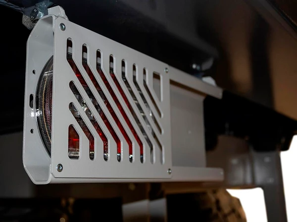 Ett skydd i kraftig stålplåt som har frästa spår för att släppa igenom ljuset. De monteras över den bakre trafikbelysningen och används för att skona belysningen och den ringa kostnaden kan snabbt sparas in.