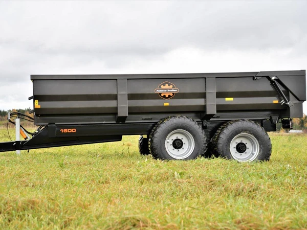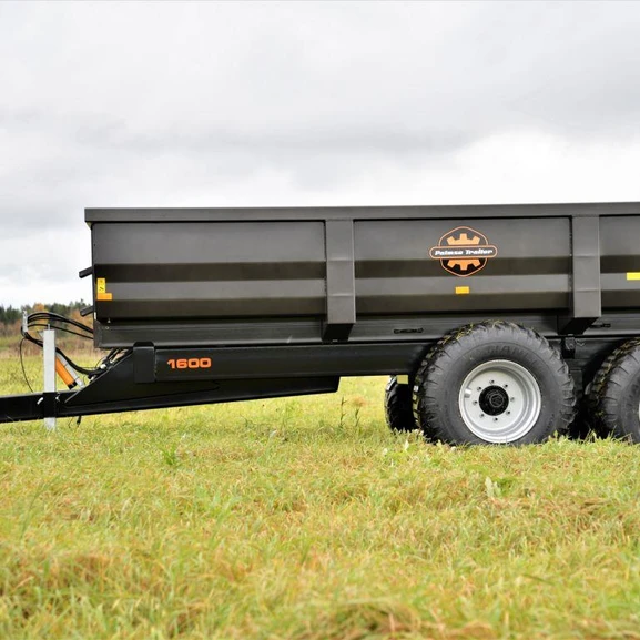 D1600 Superdumper är en prisvärd och välutrustad version av Palmses populära modell D1600. Modellen riktar sig till den som transporterar mycket material, särskilt på väg. Den är utrustad med fjädrat drag, rejäla däck med bra vägprofil (600/50-R22.5 BKT Ridemax), topp-sidohängd baklucka med entreprenadläm och höghållfasthetsstål i botten och sidor (5 mm Strenx/Optim).