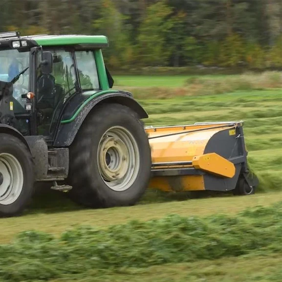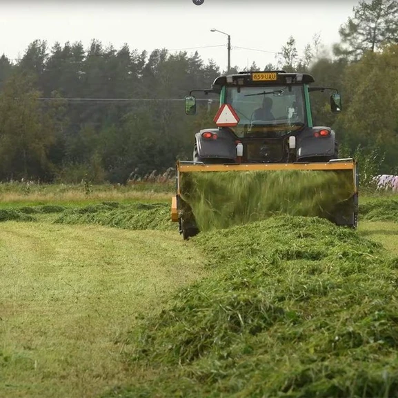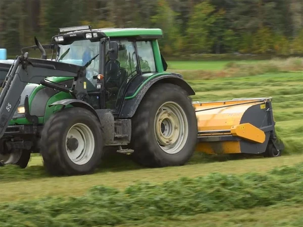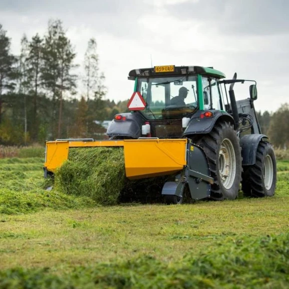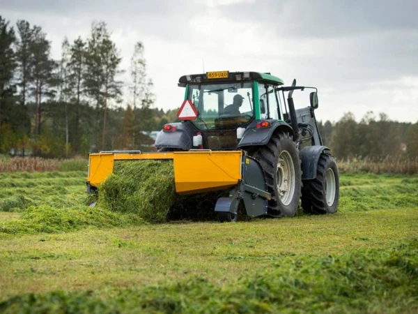 Den är utrustad med ett ledat trepunktsfäste och medstyrande hjul, vilket gör den följsam och enkel att manövrera. Maskinen lyfter och blandar fodret, vilket säkerställer att det förblir rent och torkar snabbt.