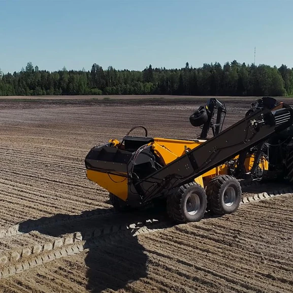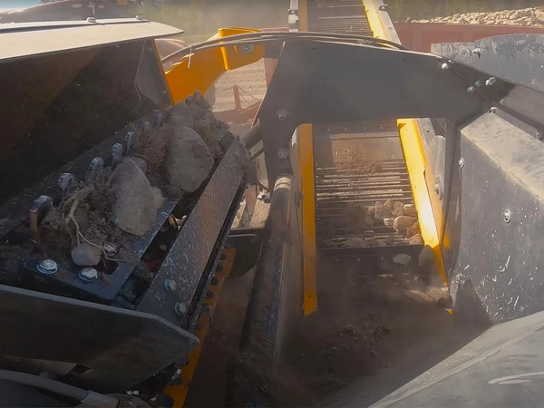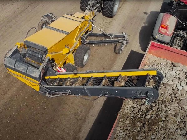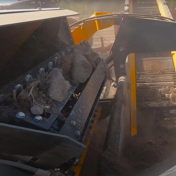 ELHO Scorpio 550 SF plockar sten effektivt tack vare sin unika helt hydrauliska drivlina.
