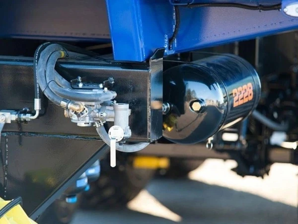 Luftbroms på samtliga fyra hjul. Bromssystemet är ett så kallat 2-line-system, vilket innebär ett delat system med separata bromsslangar för vänster respektive höger hjul. Dessa kopplas till traktorns motsvarande luftkopplingar. Systemet är utrustat med en manuell 5-stegs regulator som gör det möjligt att anpassa bromsverkan efter lasten i fem olika nivåer. Detta minskar risken för hjullåsning vid tomkörning och bidrar samtidigt till lägre slitage.