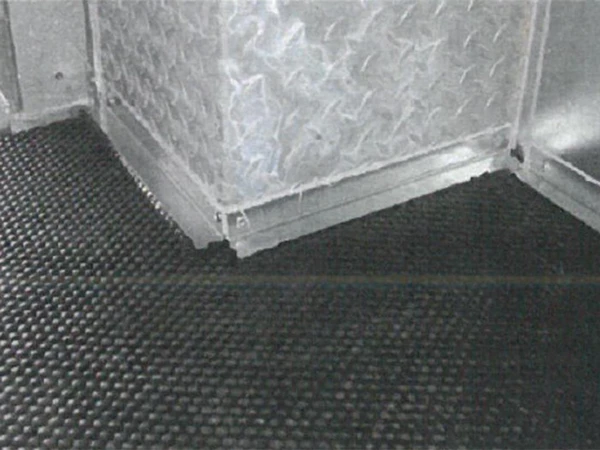 Kraftig gummimatta på 17 mm tjocklek som limmas fast på golvplåten och gör golvet extra halksäkert och mjukt.