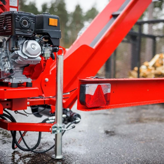 Japa 315 Road är en effektiv, säker och lättanvänd vedmaskin för kapning och klyvning av brännved. Den hydrauliska 13″-kedjesågen kapar trä med en diameter på upp till 31 cm snabbt och säkert. Sågkedjan smörjs kontinuerligt med sågkedjeolja via ett eget system, vilket gör arbetet med maskinen både tystare och tryggare.