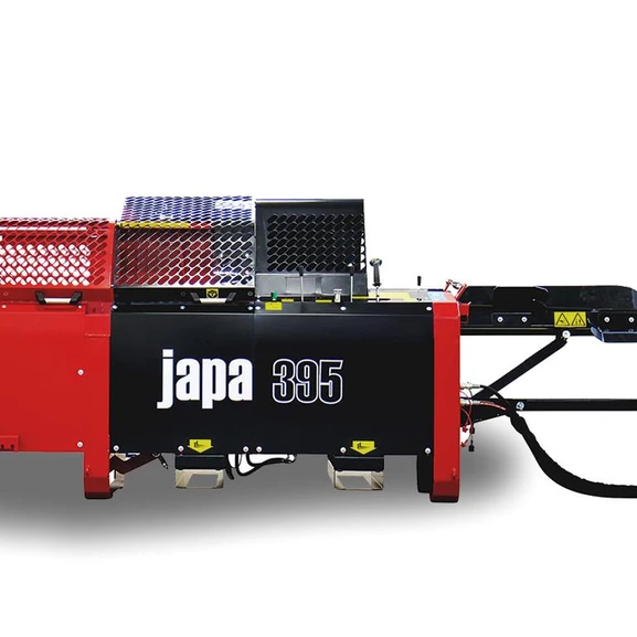 Japa 395E är en eldriven vedmaskin med en klyvkraft på 7 ton med möjlighet till 12,5 ton med tillbehör. Maskinen tar en stockdiameter på 40 cm och en längd på 52 cm.