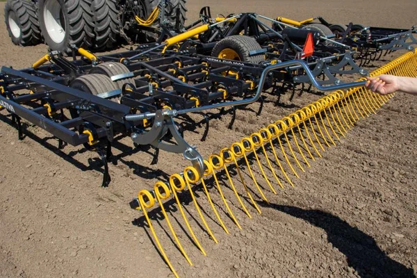Efterharv i enkelutförande består av fjädrande pinnar monterade i par med pinnavstånd på 120 mm. Vinkeln och djupet kan ställs steglöst för att ge en perfekt såbädd.