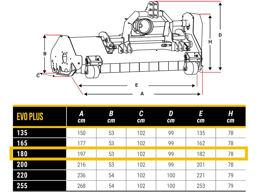 EVO Plus Frontal 180 är mellanmodellen av betesputsar i serien, med en arbetsbredd på 1,80 m och som klarar att bearbeta sly upp till Ø 40 mm när den är utrustad med hammarslagor (kan även väljas med Y-slagor). Klipparen har en kraftig trepunktsram som är vändbar och hydraulisk sidoförskjutning på 53 cm är standard. Den kompakta och mycket starka konstruktionen gör att de lämpar sig för traktorer från 40-85 hk.