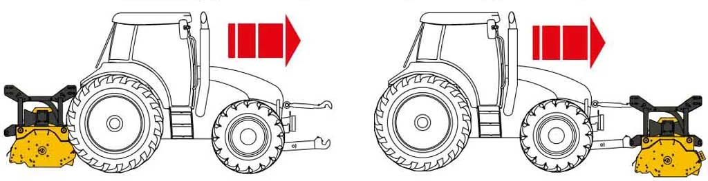 Det vändbara fästet möjliggör att klipparen kan köras front- eller bakmonterad med 540 eller 1000 rpm på kraftuttaget.